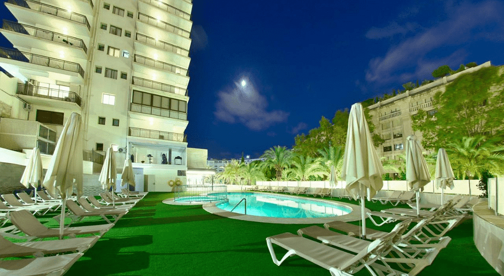 The Medplaya Hotel Riudor is another excellent choice for those who want to be in the heart of the action. Known for its casual, welcoming atmosphere, this adults-only hotel is a great base for partygoers. Located in the Rincon de Loix area, it’s within walking distance of Benidorm’s top bars and clubs.